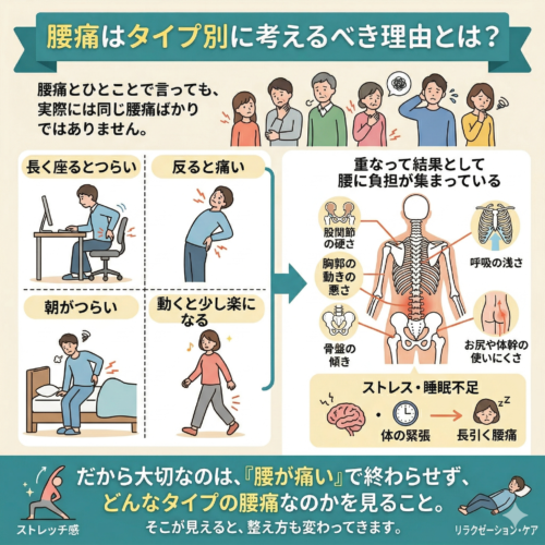 そうすると、 「なぜ腰に負担が集まっているのか」 が見えやすくなります。